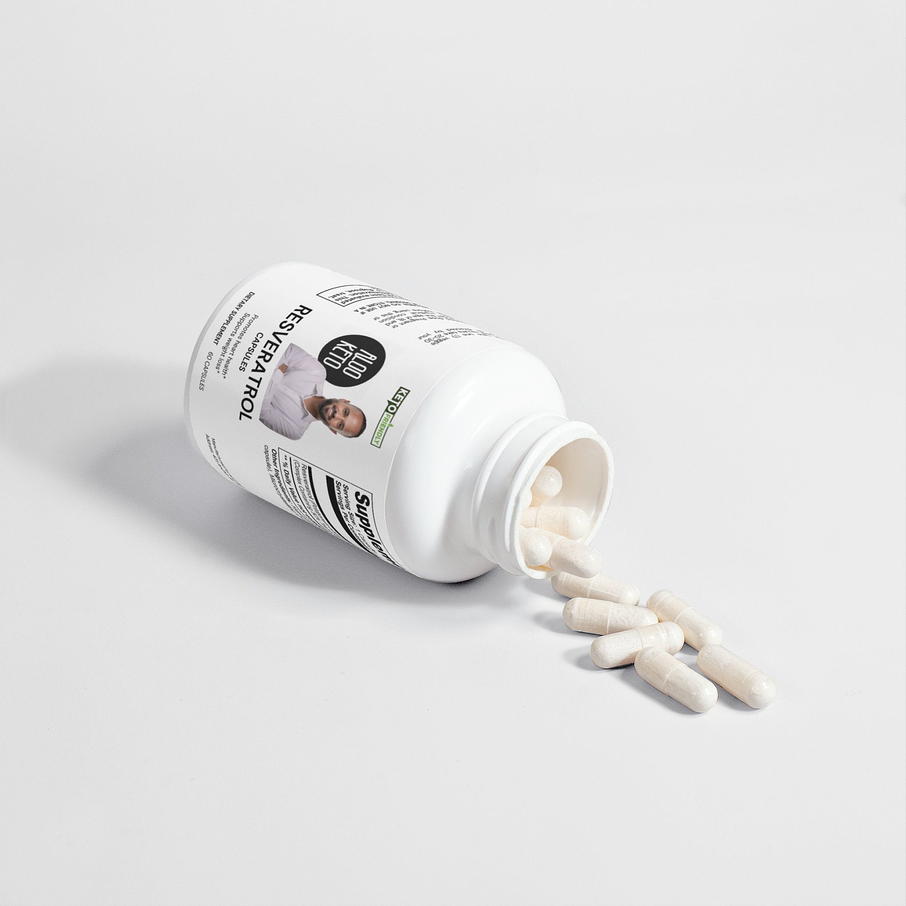 Ingredients: Resveratrol (Polygonum cuspidatum)(root) Complex Containing 50% Trans-Resveratrol, Hypromellose (vegetable capsule), Microcrystalline Cellulose.