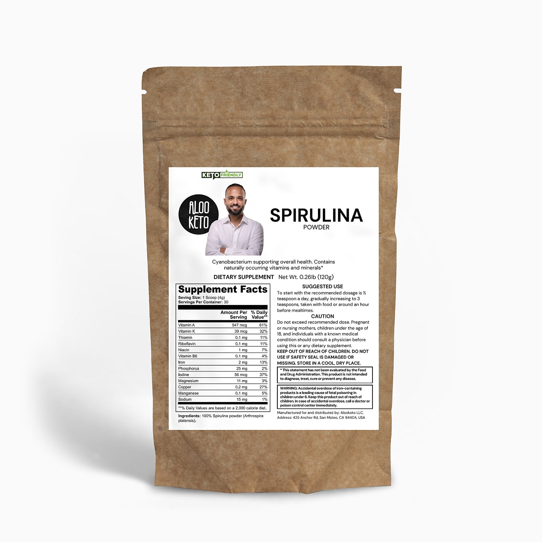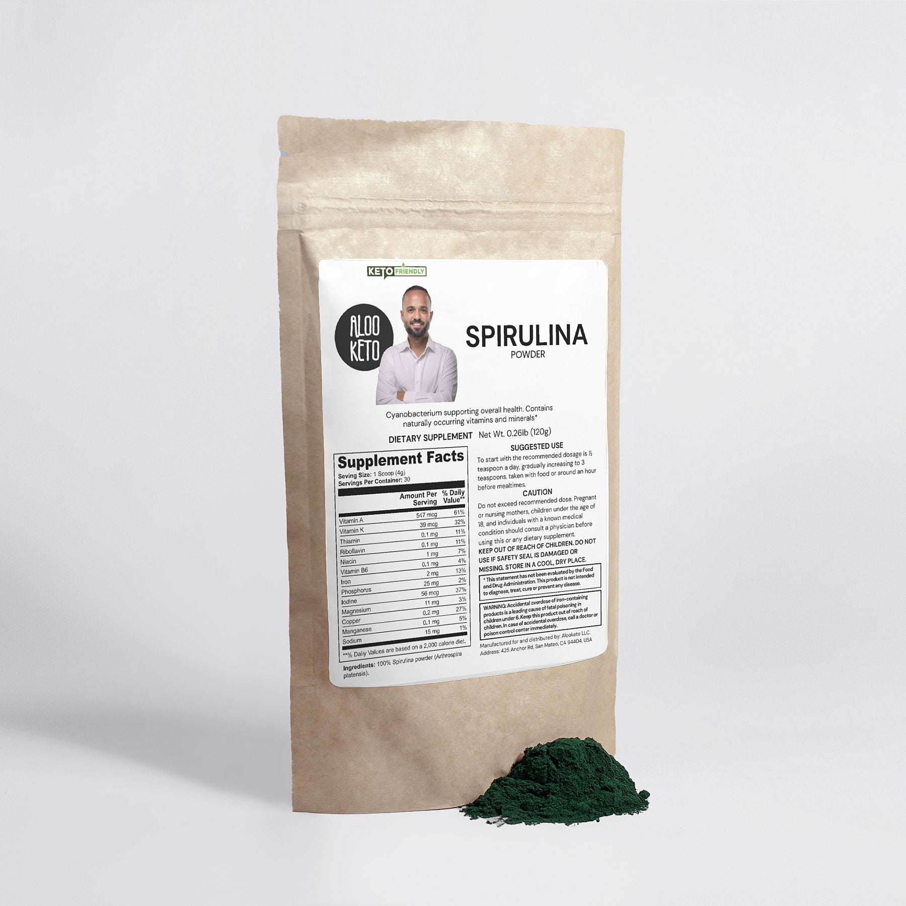 Ingredients: 100% Spirulina Powder (Arthrospira platensis).