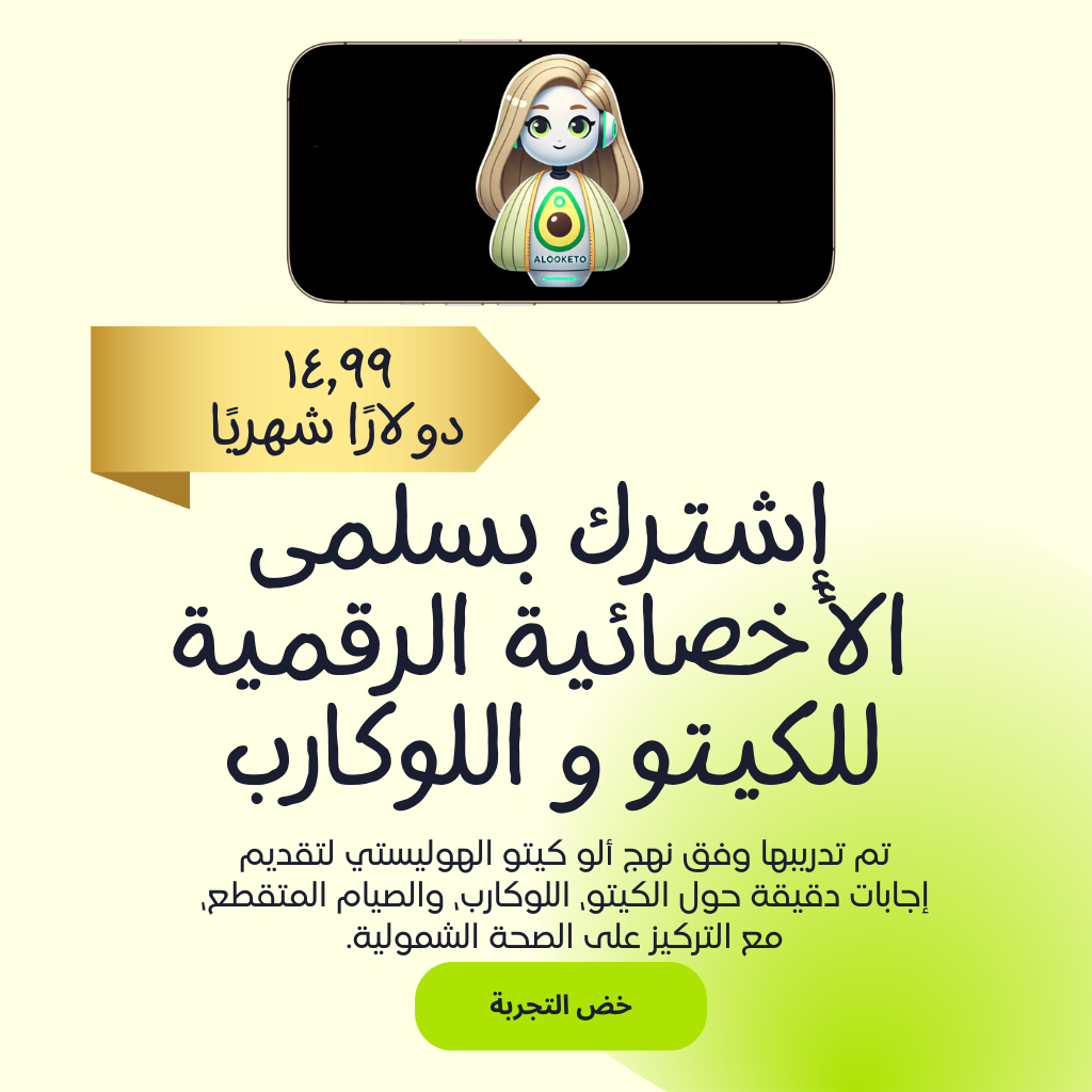 تم تدريب الأخصائية الرقمية وفق منهج ألو كيتو الشمولي، لتقديم معلومات دقيقة حول الكيتو، اللوكارب، والصيام المتقطع، مع التركيز على تعزيز الصحة بشكل متكامل.