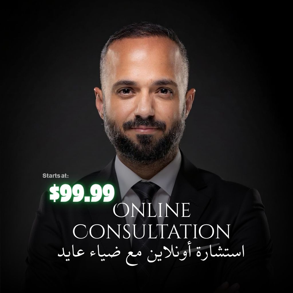 - مكالمة زووم (فيديو أو صوت) لمدة 30 دقيقة مع ضياء عايد.