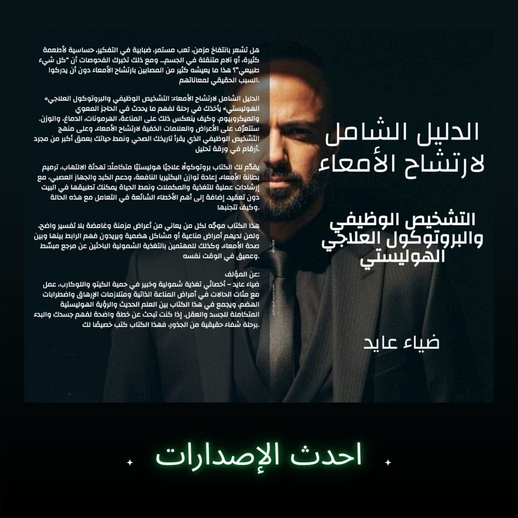 هذا الكتاب العملي من إعداد ضياء عايد – أخصائي تغذية علاجية وخبير في حمية الكيتو والصيام المتقطع يساعدك على فهم ارتشاح الأمعاء (Leaky Gut) وكيف يمكن أن يؤثر على طاقتك، مناعتك، بشرتك، ودماغك، ولماذا لا تكفي "أدوية المعدة" وحدها لحل المشكلة من جذورها.